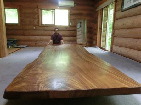 そして、その後、帰ろうとした時に、工房の外の作業場にある大きな木を見つけ、息子さんと話をしていたら、息子さんが、自宅の方に、テーブルを見に来られませんか?