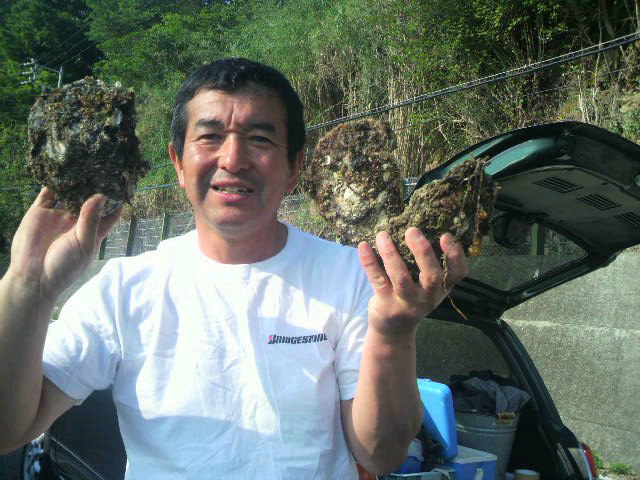 海に潜ってとった岩ガキを、送りたいみたいです。