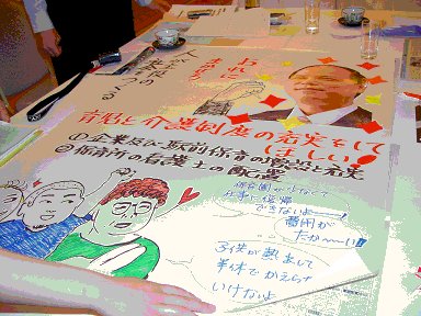 女性が7名に対して男性が1〜2名加わったグループを10数組作り討論します。