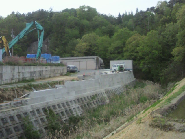 源さんが、頑張ってコツコツとついている、擁壁はすごいです。