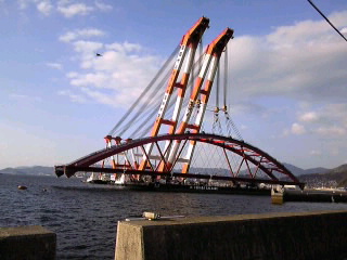 いっきに、橋を架ける工法は珍しいみたいです。