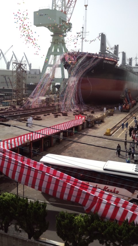 連休の合間の進水式だけに、関係する部署は、GW前半も後半も仕事です。