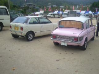 心がこもった手作りのお祭りの中、旧車を懐かしそうに見る人たちがいらっしゃいました。