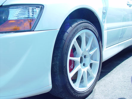 車検対応マフラーにENKEIのWRCタイプのアルミホイールを装着。