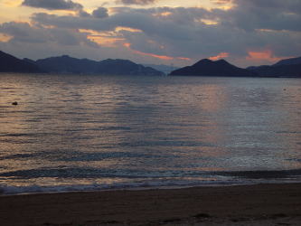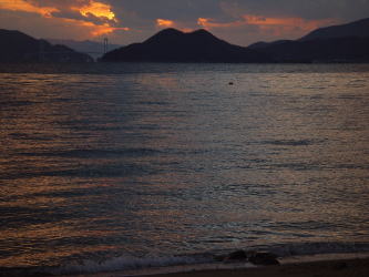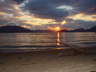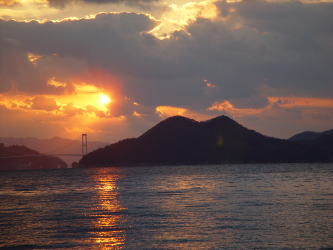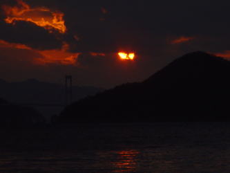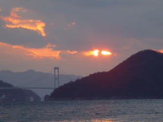 | 2005年1月2日、皆で2005年走り初めをしている時、そろそろ陽もおちはじめ、解散にしようと話していたら、源さんは一人大急ぎで帰っていきました。夕日がきれいなところがあるから・・・と。毎日違う顔の夕日があるけれど、今日のこの夕日は今日しかないです。源さんの50才の誕生日の夕日が沈んでいきました。(Photo:豊田郡安浦町) | |