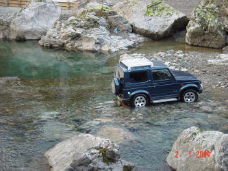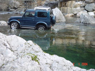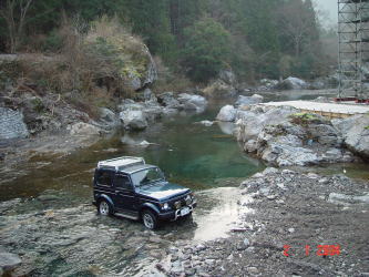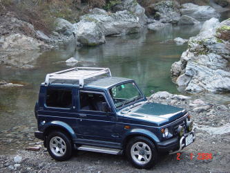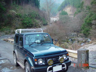 | ジムニーできたからには源さんは冒険をしないと気がすまないみたいで地図にものっていない林道の終点まで道無き道を走ったり谷におりては車で走ったり。遊び心は何才になっても健在のようです。 | |