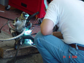 | 今回ミッションを下ろすということで源さんのたっての希望があり、フロントデフを入れることにしました。源さんの古きよきライバルであるキャロッセの長瀬さんにお願いしてWRCラリージャパンでお忙しいところを至急手配していただきました。 | |