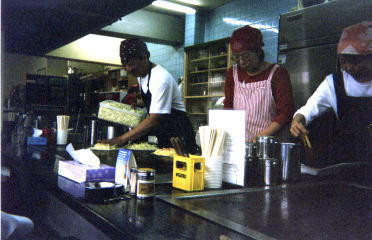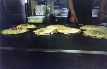 | 谷口さんご夫婦と何人かのスタッフでいっきにすごい数のお好み焼きが作られます。 | |