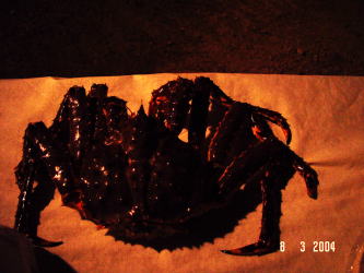| 蟹蟹蟹蟹かに〜。ナイトーの恒例、社員旅行から帰ってくれば・・・蟹のおみやげ〜。めちゃくちゃ大きいた「らばがに」大きな鍋をだして、ゆがいて食べます。おいしかった〜。有難うございます。 | |