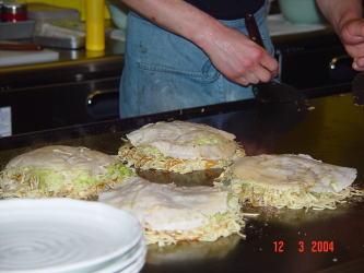 | 2004年11月2日 ◆念願かなって、皆でお好み焼き「一菜」へ行きました。◆ | |