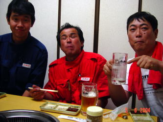 | 前週の日曜にモンテの走行会が行われ、久々に同じ土俵で走った3人はなかなかテンションがおさまりません。それでまたまた集まって「馬鹿を言おう」ということで焼肉屋に集まるところがやはり、濃い〜、3人です。そしてホントに呑めない3人は甘いパフェなんかたべています(似合わない!!~~) | |