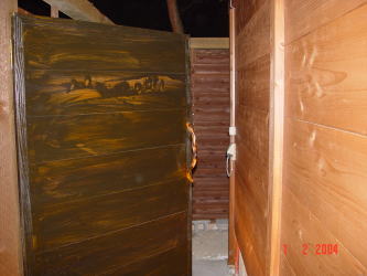 | 今回のメインメニューはカキでした。とにかく突然です(笑)。「明日、夜、しよう。」そんな感じで声がかかります。それでもたくさんの人がいつもすぐに集まります。それはきっと、源さんの人柄と・・・楽しいからでしょうね。 山小屋に入口の扉が出来上がっていました。とてもシックな感じでセンスがあって素晴らしいです。 |
