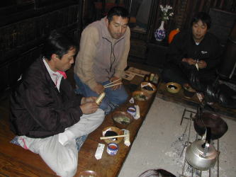 | 皆、段々とお腹も落ち着き話に華が咲き、それぞれが思い思いの場所に腰を落ち着けます。2時ころまで会は続き片付けて解散です。これで無事新年が迎えられます。 | |