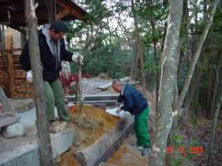 | 2003年12月28日 ◆忘年会にあわせてついに露天風呂が完成しました〜。◆ | |