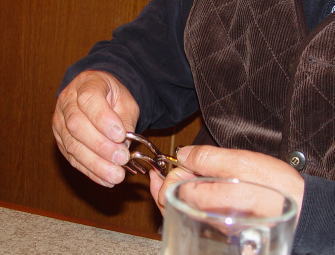 | 初めから最後まで今回は皆、食べるか知恵の輪かというくらい知恵の輪に夢中でした。源さんが買ってきた知恵の輪は源さんしかはずせず皆、やっきになってやっていました。3時間近くの宴会が終わる頃には一応はずせるようになっていたものの本当に必死になっていました。たまには頭を使うのも良いと思いますが、源さんは「自分は単純だから出来るんだ」と謙遜します。皆、今年初の集まりでしたが楽しく元気で新年会は盛り上がりました。 | ![]() |
