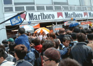 色とりどりのブースがあり,キャンギャルが華をそえ,レースとは別に楽しめる