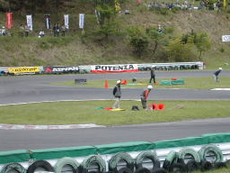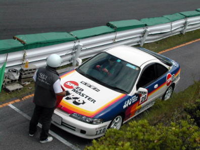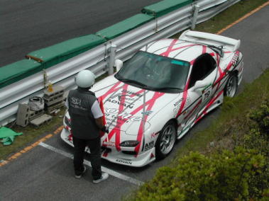 コース内には何人ものコースオフィシャルがおり車の動きを見ながらパイロンタッチや脱輪をチェックします。