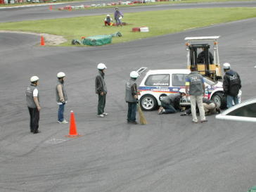 トラブルにみまわれた車をオフィシャルが処理します。 |