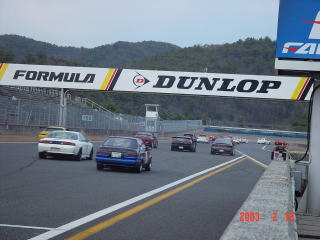 一回目の走行 50台同時の走行では広いTIと言えどもかなりきつい。クリアラップがとれるのだろうか? 最後尾近くのスタートではやはりなかなかクリアはとれずタイヤもタイムアタックに残さなければいけないし難しい。