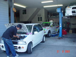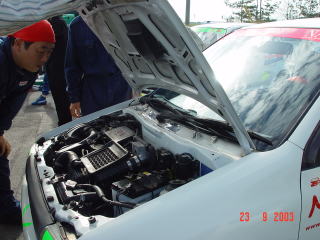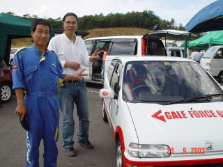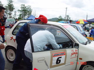 わがNaito Fan では2台のターボ車が参加しました。いつものミラクロスフォーとセルボです。ドライバーはミラが山ちゃん、藤井さん、よりさん、たっちゃんでこちらの車には5分のピットストップが余分にハンディとして課せられました。セルボは源さん、藤沖さんに私です。こちらの車は作りはじめてまだ2週間で、スクラップにするごとく2年近く放っておかれたものを、緑のこけをおとして磨いてやっと走れるようにしたものです。