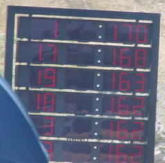 藤沖さんに変わって、ナイトー2号は水を得た魚のごとくビュンビュン快調に走ります。動かなくて遅いはずですが、抜かしていきます。バトルはありません。他チームのドライバーもさっきまでの私のよたよた運転とは違ってびっくりでしょう。電光掲示板の6位までの車両の中にゼッケンが掲示され、段々上位に入っていきます。すごいな〜。落ちる一方の私の時とは違います。最下位だったはずです。