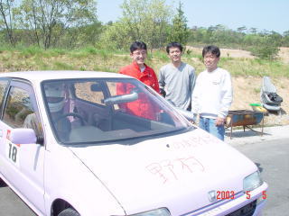 シュン太郎!! 誰かに聞いてみたいし自分はどこもみてなくて目をつむっていたと思います。ホントだめでしょ・・・今回のスピンだって運がよかっただけです、大変なことにならなくて良かった。タイムがわからなかったのですけど・・1分は切れていたと言われたのでまぁ良かったかな・・・。わかってはいるけれど、何をしているか判らないくらい下手ですよ。車が可愛そう。ミラがエンジンブローでリタイヤしたので皆でこちらのクルマに乗りましたけど最初はその予定でなかったから第一走者の私がたくさん乗ってしまい・・・。