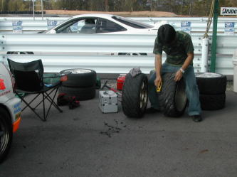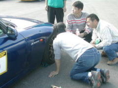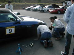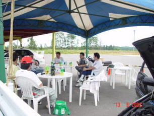 ■ 源さん,たっちゃんお疲れさまでした この日,源さんは,ゲストとして,デモ走行を行い,また同乗走行希望者を乗せてのタイムアタック・・・この日は48周走ったそうです。同乗者には,コナーの曲がり方や,コース取りなどをアドバイスされ,きっと源さんの横に乗った人は,よい 体験になり,タイムも上がったのではないでしょうか,実はおいらも乗りたかった(タイムが伸び悩む時に早い人の横に乗るととても勉強になりタイムがポっと出ることがある。)が,源さんの人気は高く順番待ち状態だし,ほとんど徹夜でのタカタ入 りで・・・でもその元気どこから出てくるの? また,たっちゃんは今回は出場していないのに,源さんのメカニック&おいらのメカニックもしてもらい・・・ありがとうございました。走りたかったと思うのですが・・・今度のモンテで思いっきり走ってください。