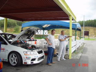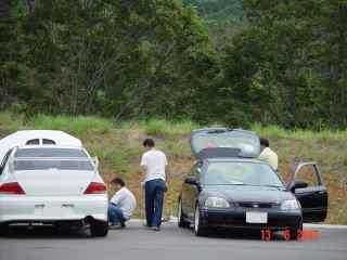 | たっちゃんはセッティングを兼ねて伸び悩むタイムを諸先輩方にアドバイスいただいていました。皆さん、ランサー乗りですので他人の車でも速いタイムを出されます。 | 暑い夏にタイムを出そうと来場する方は少なく、雑談していても思う存分走れます。 | ||||||||||||||||||||||||||||||||||||||||||||||||||||||||||||||||||||||||||||