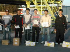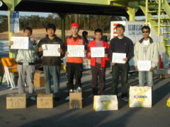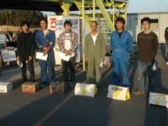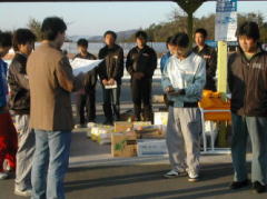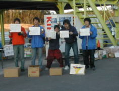 ■ 閉会式 まあ,自己ベストはでなかったものの,若い学生くん達とも交流できて楽しい一日が過ごせました。ちなみに順位は今回も1番にはなれなかった。0.5秒差で2番手1番は新井君でした。競技は3時半ぐらいに終わったのですが,なかなか閉会式が始まり ません。結局1時間以上たってからようやく閉会式に。遅れた理由は手書きの表彰状のせいかな?表彰状・・・小学校以来かな・・・なかなか新鮮な気持ちになれました。 ようやく表彰式が5時過ぎに終わり,ここからジャンケン大会!その景品の多さにビックリ(いろいろな企業からの協賛品)それを1つずつ50人以上でのジャンケン大会・・・これが永遠と1時間以上続き,終わったころには,あたりは真っ暗でした。 学生君たちは盛り上がっていたけど,長すぎます!もう少し考えてください。競技終了から表彰式終了までは,せいぜい1時間以内でね。 帰りの時も,出口で学生君たちが深々と頭をさげて「ありがとうございました」とても気持ちがよく,また来年も来ようかなと・・・思いました。もう少し,タイムスケジュールを考えて下さい。気分は学生、体力はおじさんです(笑)。 今日は温泉に行って帰ろうと思っていたので,家に帰ったのは9時をすぎていました。・・・でも楽しい1日が過ごせました。皆さんお疲れさまでした。