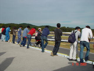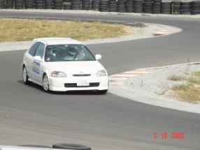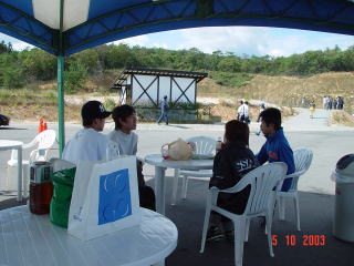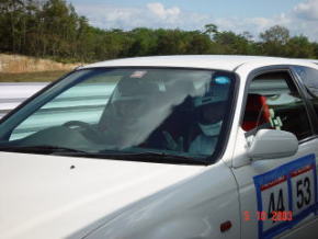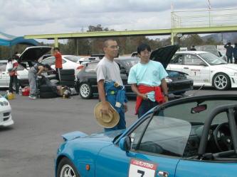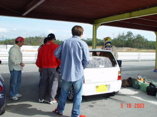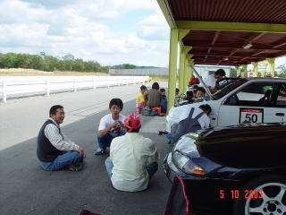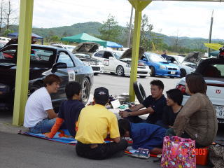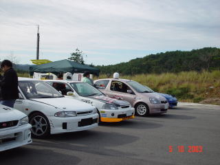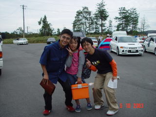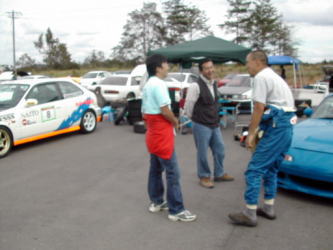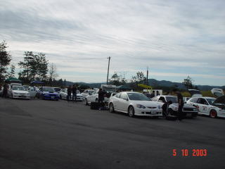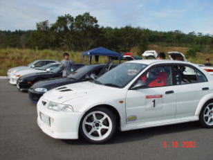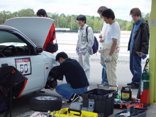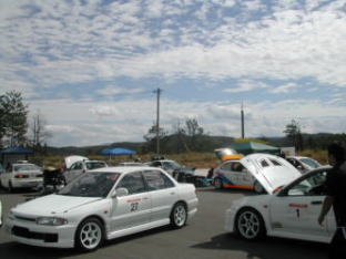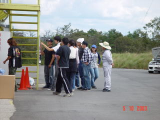 今日、一緒に参加している人の横に乗りました。 その結果、とても参考になった。ヴィッツ(武島君)などでは、1速と2速のギア比がはなれているしパワーがないので、コーナーによっては、多少最短のラインをはずしてでも失速しないようなラインを選択した方がいいのかな、 ランサー(岸君)などでは、内週などでは無駄なラインを通らず、最短距離で距離をかせぐラインの方がいいのかな などと横にのっていて色々自分の車ではどれがいいのか試してみたいと思いました。私自身まだ51秒台なので要練習です。もちろんそれが楽しいので、来年もこの大会があれば更なるタイムアップをめざしてスポット参戦する予定です。 久保田さんの横にも乗る予定だったけれど、初心者の方を乗せてあげたり、見学にきていた学生さんたちがたくさん同乗させてくれ〜ときていたのでまた今度となりました。