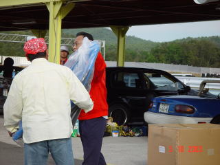 | 大会終了後、アナ西元チーム?は次週行われる8時間軽耐久のために車両を持ち込みテストランです。 |