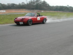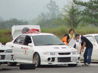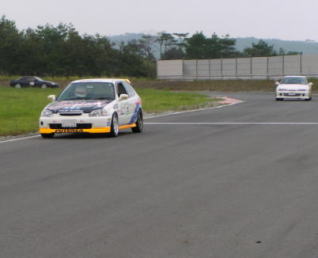 今回はじめてレポートをかくので,少し事故紹介です。私は,周りからはよく車を壊すとかクラッシャーとかいわれていますが,少しばかりコースからタイヤが落ちたり,おしりを振ったり,部品がおちたりとかするくらいです。昨年Wをしていた久保田氏は少し心配だったみたいですが・・・。H4〜8年頃ジムカーナをやっており,H8年?の地区戦(タマダ)でCR−Xをひっくり返したので,車を壊すイメージがついたのかな。でもたった1回しか事故していないんだけどなぁ。