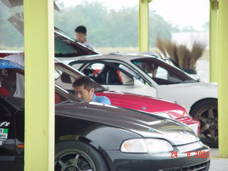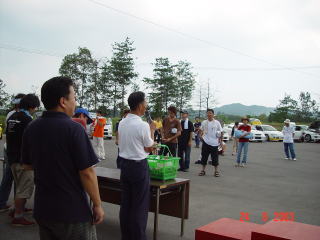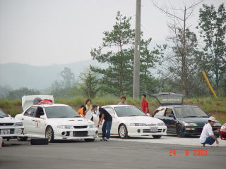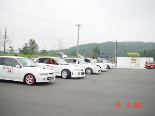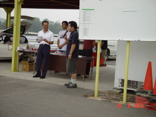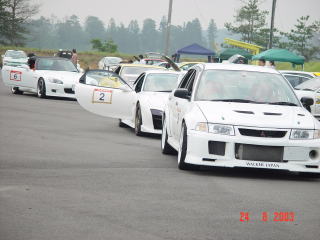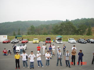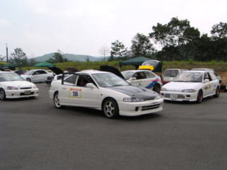 源氏さん,HPの管理人さんらと一緒にタカタへ出発です。なんと源氏さんはNSX−Rでの参加です。現場につくと今日は約40台の参加です。モンテカルロの走行会は,みんな思い思いの車で参加できるので,とても参加しやすい走行会です。ノーマル車の人から,ジムカーナ仕様,サーキット仕様の人までいろいろです。また,この走行会は,クラス分けが面白く,タイムで走るクラスをわけます。早い人はグループA(なんか昔のWRCみたいです)で,以降7台ずつくらいでB,C・・・と続いていきます。同じようなタイムの人で周回するので,車の仕様,腕などあまりきにしなくてもいいんです。だからラジアルタイヤでもOKです。さあ私のクラスは,BとかCとかです。源氏さんや,頼重さんなど早い人はAクラスです。