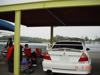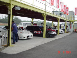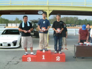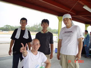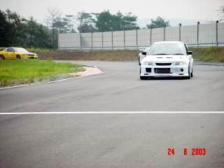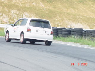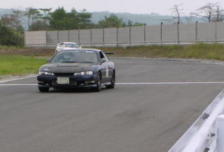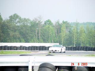 よしこんどこそ,いくら走っても,久保田さんのタイムに届かずジエンドです。今日は人間があつくなりすぎました。まだ,この車で徹底的に走りこんでいないので,ブレーキポイントがあまく,不安定でした。このくらいかなと思ってつっこんだらタイヤがグリップするので早くとまりすぎて,二度ブレーキみたいな感じで走ってしまったので,当然コーナー立ち上がりでトラクションがぬけているのでタイムはいまいちでした。もっと走りこまないと・・・。