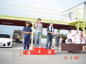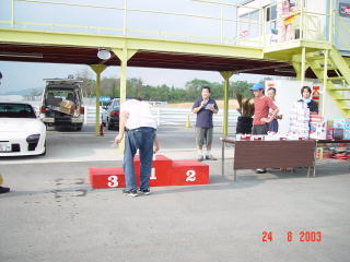 今日は源氏さんがNSX−Rできています。早速同乗走行をお願いし,全開です。このように気軽に参加できて,商品(ビンゴ)もよくて,うまい人の同乗走行もできて,とてもお得な走行会です。こんどはランサーに乗る源氏さんの横に同乗したいです。あと頼重さんにも同乗走行をお願いしたのですが,すぐ返事が・・・。「助手席がない」これではのれないなあ。助手席をつけてほしいなあ。