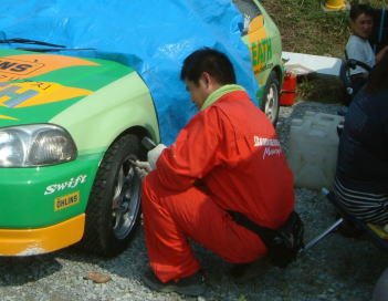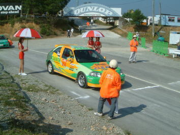 | 02河内選手(地元のベテラン全日本ドライバーです) |