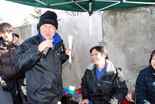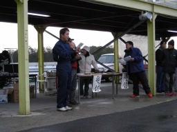 | SF自動車の社長さんです、現金の協賛していただいたので、それを、くじで当たった方に直接、贈っていただきました。 |