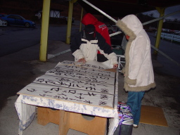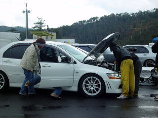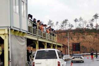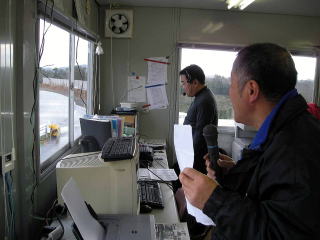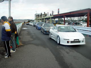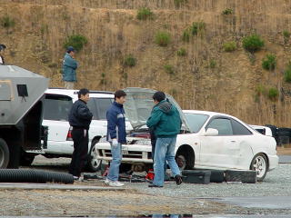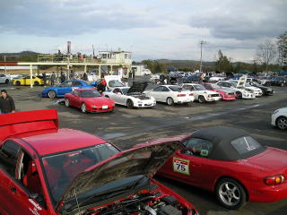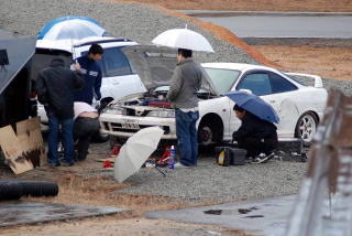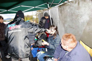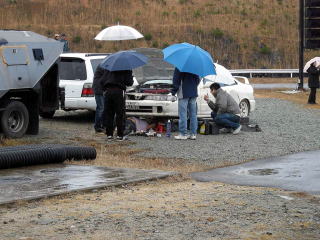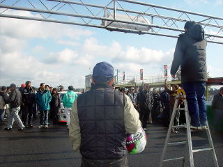 ビンゴにあがった人は、くじをひいていきます。はじめはリーチになった人はピット下より、外に出ていましたが、途中で雨も降ってきて入れ替えになり、リーチがいつまでたっても来ない人は外に出されていました。とにかく皆、真剣そのものです。 |