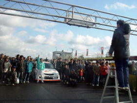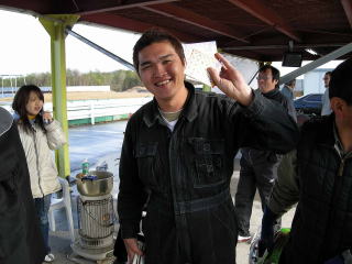 そして、本日、全日本よりもハードなスケジュールで行われた、走り納めお楽しみ会を盛り上げてくださったアナ西元さんにビールが送られ、源さんから、参加者の皆さんにお礼が言われました。皆さんのおかげで、今年最後の走り納めを楽しくすることが出来ました、本当に感謝いたします。これからも、モータースポーツ、車遊び、頑張って楽しんでいきましょう。
