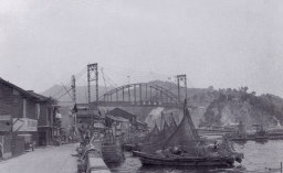 音戸大橋と言う朱赤の橋が建造されたのはS34年です。今でも利用されている音戸の渡し舟がその頃は唯一の交通手段でした。 |