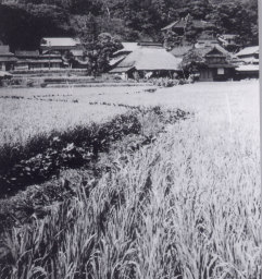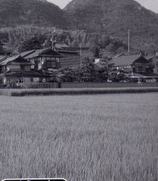 S40年頃の田園風景。わらぶき、かやぶき屋根がほとんどでした。S50年頃にもまだ、かやぶきの家がたくさんありました。